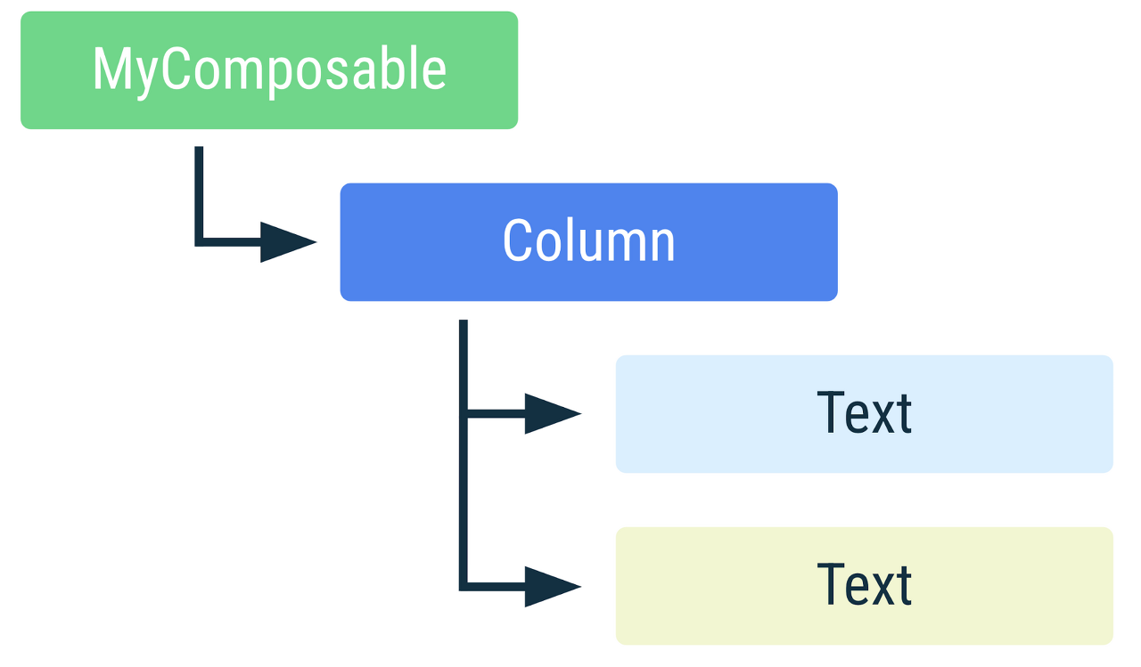 위 그림은 MyComposable의 트리 구조이다. Composable이 여러번 호출되면 여러 인스턴스가 배치된다. 색상이 다른 요소는 별도의 인스턴스임을 나타낸다.